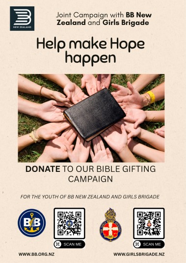 BB New Zealand and Girls’ Brigade New Zealand are partnering with The Bible Society to run a bold campaign: to fund and print 3,000 Bibles to be distributed in 2026.